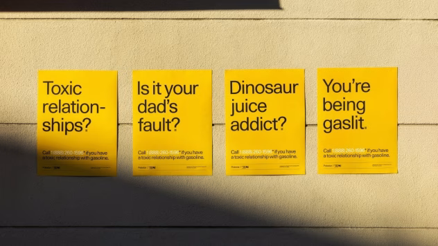 Tai nėra nauja sveikatos krizė, tai reklaminė akcija, kuri pristato benzininį automobilį kaip „toksiškus santykius“. Kampanija startavo per „Climate Week NYC“, prasidėjusią rugsėjo 22 d. Žmonės, pamatę plakatus, raginami net paskambinti specialiu numeriu.