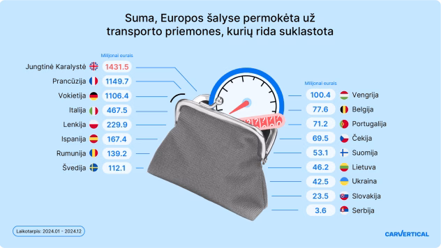 Įvertinus „carVertical“ tikrintų automobilių skaičių, vidutinę jų vertę ir ridos klastojimo mastą konkrečioje šalyje, Jungtinė Karalystė kasmet dėl šios problemos praranda apie 1,4 mlrd. eurų, Prancūzija – 1,14 mlrd. eurų, o Vokietija – 1,1 mlrd eurų.