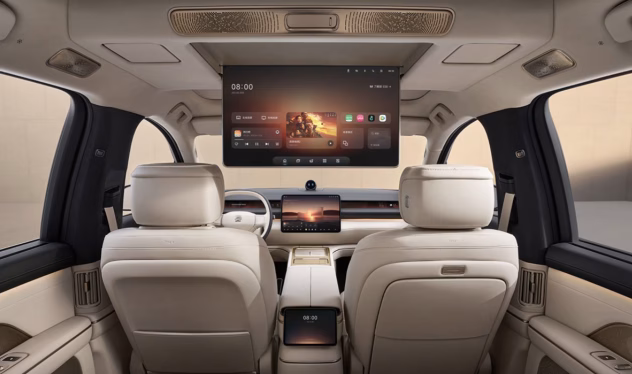 Centrinėje konsolėje įmontuotas 16,4 colio AMOLED ekranas, o galiniams keleiviams iš lubų nusileidžia net 21,4 colio ekranas su 3K raiška. Salone yra penkių zonų klimato kontrolė, nedidelis šaldytuvas, šildomos visų eilių sėdynės. Garso sistemą sudaro 27 garsiakalbiai su 2600 vatų galia ir „Dolby Atmos“ technologija.