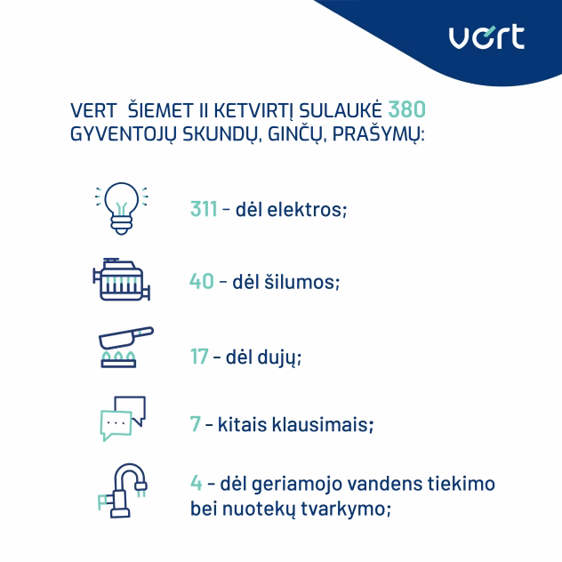„Mūsų tikslas yra ne tik suteikti aiškią ir suprantamą informaciją apie vartotojų teises energetikos bei geriamojo vandens tiekimo srityje, bet ir užtikrinti jų apsaugą nuo galimų pažeidimų. Pastebime, kad gyventojai vis aktyviau domisi savo teisėmis ir žino, kur kreiptis norėdami gauti pagalbą ar aktualią informaciją“, – sako VERT Komunikacijos skyriaus vadovė Gabrielė Vasiliauskaitė.