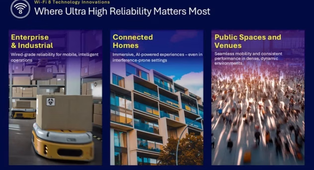 „Wi-Fi 8“ taip pat pritaikytas dirbtinio intelekto sprendimams, kuriems reikalingas itin stabilus ir mažo vėlavimo ryšys, kad būtų galima realiu laiku bendrauti su debesijos ar periferiniais serveriais.